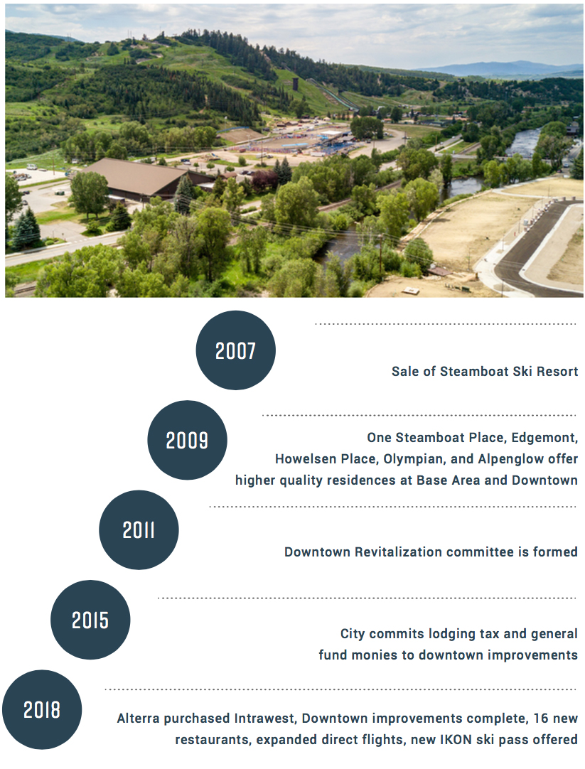 For the future Steamboat Springs is committed to investing in its experience for residents and tourists. From 2007 to 2018 Downtown Steamboat has seen unprecedented private and public investment. With new ski area ownership, Steamboat is the next great Colorado mountain town.