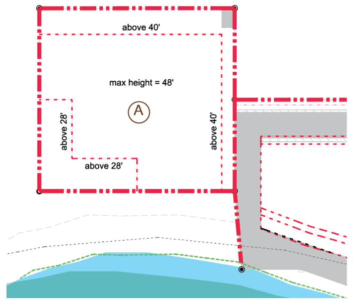 • With only a public plaza between site A and the Yampa River, this is the highest density of any riverfront parcel in Steamboat Spring.